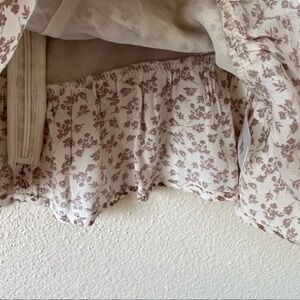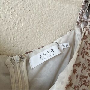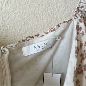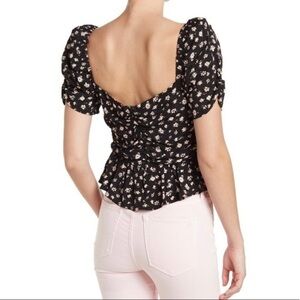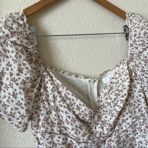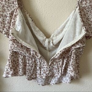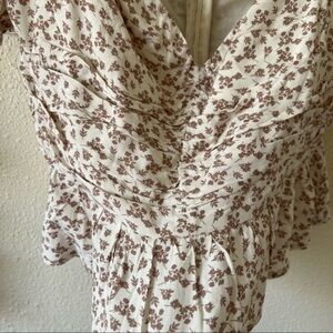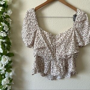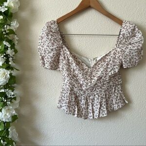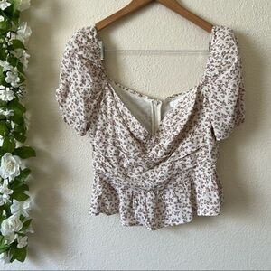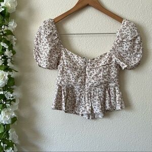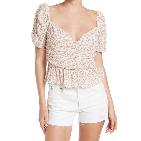 ASTR the Label Beige Ditsy Sweetheart Puff Sleeve Floral Ruched Top