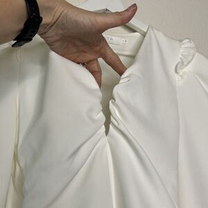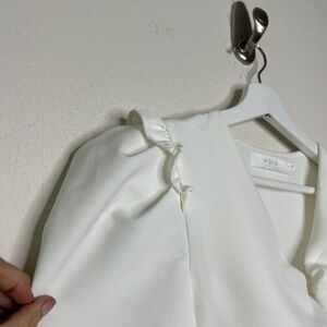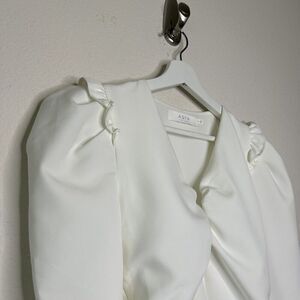 Elevate your wardrobe with the ASTR Amora Puffed Ruffle Trim Long Sleeve Bodysuit new with tags. This elegant piece features a V-neckline with ruched chest and supportive wire for a sleek look. Puff sleeves with ruffle accents add texture and style. Invisible side zipper closure with a double snap closure. Has stretch. Get ready to turn heads with this versatile and chic bodysuit. All measurements are approximate, taken flat and closed.
