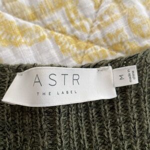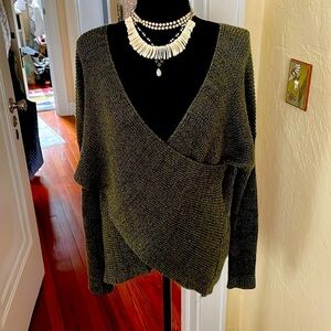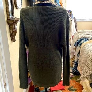 This ASTR sweater is in like new condition no sign of wear. Rich army green color can be styled with belt as shown. It is so soft and drapes gorgeous with low cut can be worn with or without anything underneath