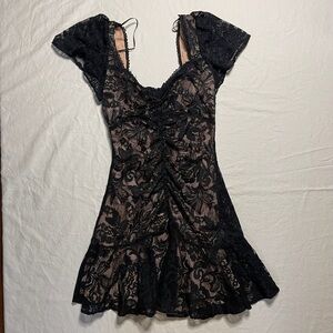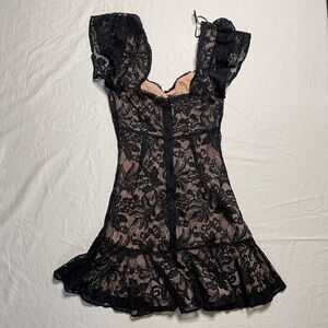 Chic black lace overlay with cream lining. Ideal for evening events.