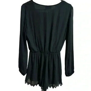 ASTR Black Lace Trim Long Sleeve Romper Size Medium