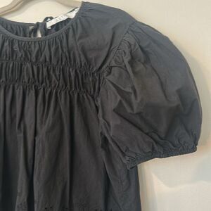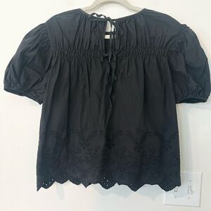 Black Puffed sleeve A-frame Tie back Eyelet detail hemline VGUC XL