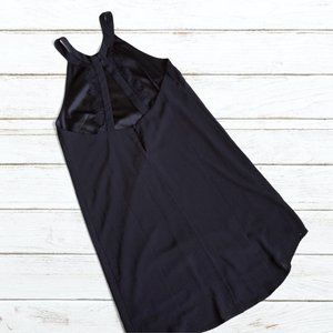 ASTR black racerback lace detail dress. Size S. This sleeveless dress has quite a high neck, with the most beautiful strap and lace detail at the back. Fully lined. Slightly longer at the front than the back. Slightly textured material, 100% polyester. Label does state dry clean only. Good condition. From smoke/pet-free home. Please feel free to ask if you have any questions.