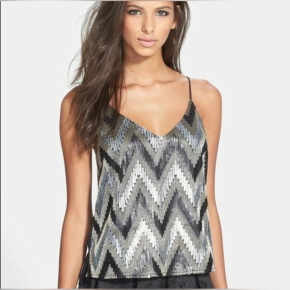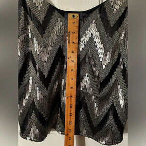ASTR Black Silver Sequin Special Occasion Zig Zag Chevron Layer Cami M PRISTINE