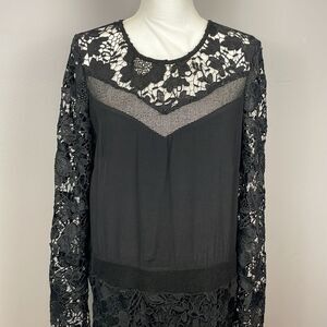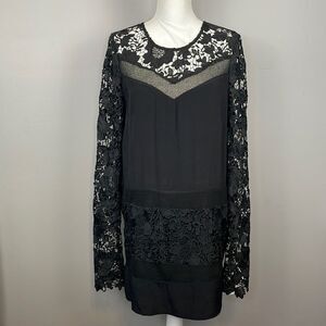 ASTR Black Long Sleeve Floral Lace Mini Dress. Size Large. Witchy, Goth Style.