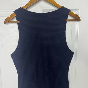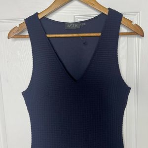 ASTR Blue Sleeveless V-Neck Tulip Pique Knit Bodycon Mini Dress Medium
