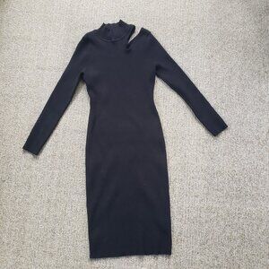 ASTR Bodycon Midi Dress Black Knit Cut Out Medium ACDR100434