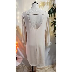 ASTR Boho Chic Ivory Crochet Lace Trim Tunic Shift Dress Womens Size L Flowy
