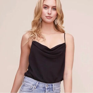 Preowned. Keep it casual in this simply classic bodysuit! It features a flattering cowl neckline, barely there adjustable straps and low cut back. runs small please see measurements