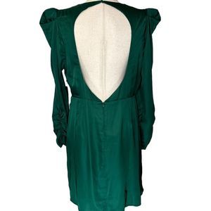 ASTR Cascade Long Sleeve Ruffle Front Mini Dress Green Satin | Size XL