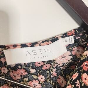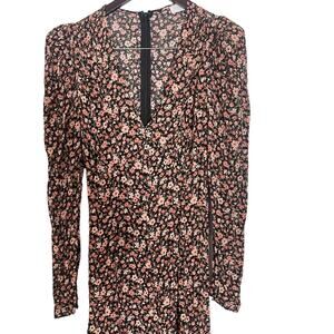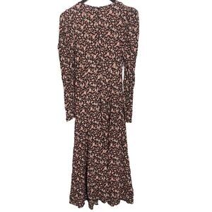 Vintage early 1990s style is brought back with modern influence in a V-neck dress that features long puff sleeves, a ditsy floral print and is pintucked to create dimension, and covered buttons.