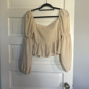 This elegant cream top features a stylish design perfect for any occasion. Its soft fabric and flattering fit make it a must-have addition to your wardrobe.