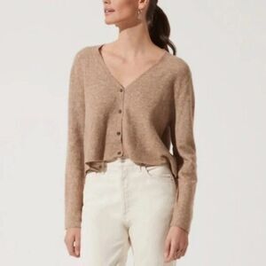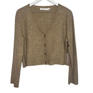 ASTR Cropped Cardigan Sweater Womens Small Natural Tan V-Neck Fuzzy Button