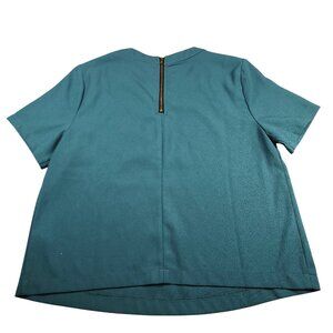 keywords: astr the label, teal blouse, teal cutout top, women’s short sleeve blouse, minimalist blouse, chic workwear top, business casual blouse, date night blouse, structured blouse, exposed zipper back top, capsule wardrobe top, summer blouse, fall blouse, modern chic, career wear, trendy blouse, versatile, minimalist