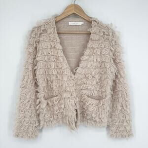 ASTR Darby Sweater Shaggy Fringe Open Front Wool Blend Cardigan
