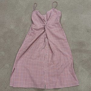 // ASTR The Label Max Dress, twist front, sleeveless, sweetheart neckline, adjustable spaghetti straps, a-line, button front, smocked, smocking, plaid, gingham, spring, summer, lightweight, feminine, flirty, easter