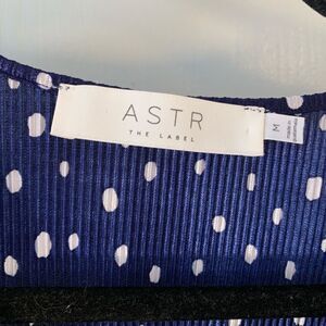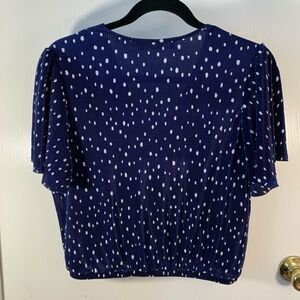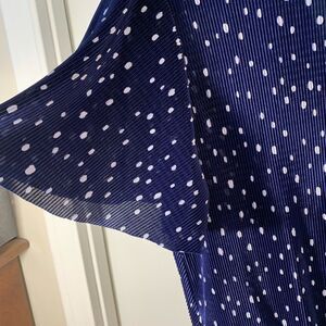 ASTR EUC navy blue/white polka dot pleated flutter sleeve blouse Size medium