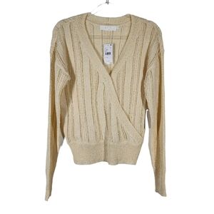 ASTR FAUX WRAP FRONT POINTELLE KNIT SWEATER