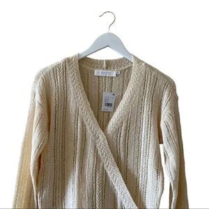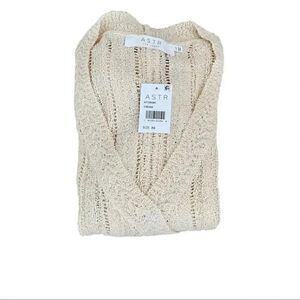 ASTR Faux Wrap V-neck Pointelle Knit Pullover Sweater in Beige Cream SZ XS