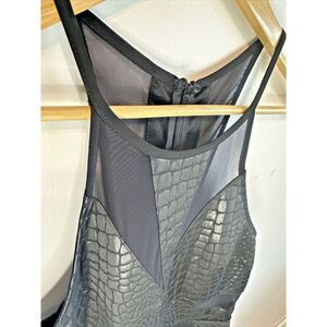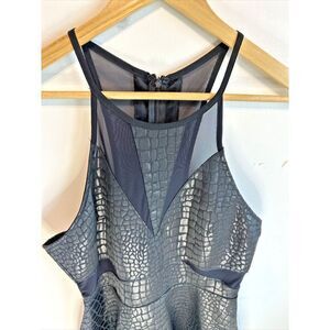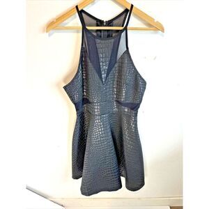 ASTR Fit & Flare Dress Black Mesh Shake Skin Textured Sleeveless womans Medium