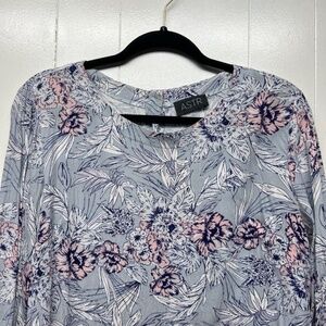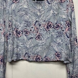 ASTR women's floral top. Round neck. Long sleeves. Buttoned cuffs. Cropped. Relaxed boxy fit. Buttoned in back. Lightweight. In good used condition. No stains, tears or holes.