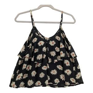 ASTR Floral Tiered Crop Top Large Sleeveless Daisy Flowy Layered Overlay Ruffle