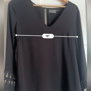 ASTR Flowy Lattice detail Dress long sleeve in black size small