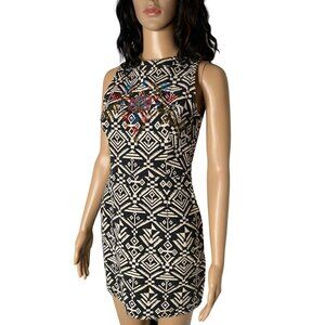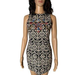 Tags: mini dress, spring dress, sleeveless dress, boho, bohemian, aztec, beaded, embroidered, open back