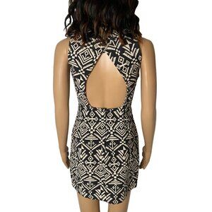 ASTR Geometric Open Back Sleeveless Mini Dress Black White Size S