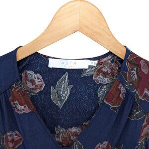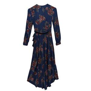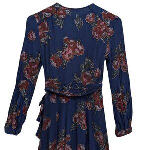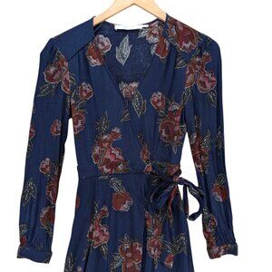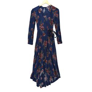 ASTR Isabel Maxi Wrap Dress Navy Burgundy Floral Long Sleeve Lined Size XS