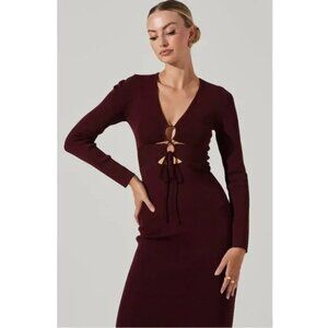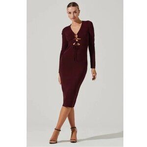 ASTR Jovie Front Cutout Bodycon Midi Dress in Wine
