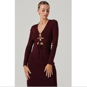 ASTR The Label Jovie Front Cutout Bodycon Midi Dress in Wine