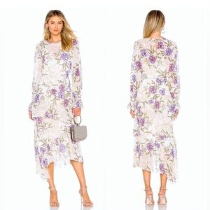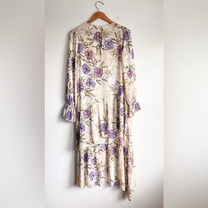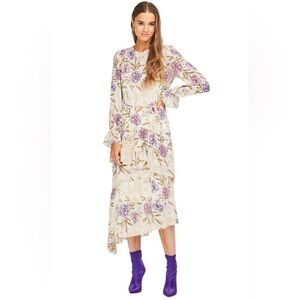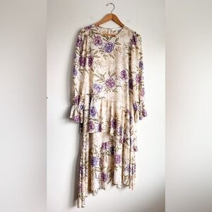 ASTR Lilac Cream Floral Asymmetrical Hem Victorian Wedding Guest Midi Dress S
