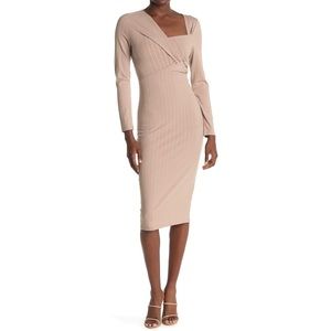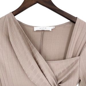 ASTR Nude‎ Beige Twist Front Wide Ribbed Midi Dress
