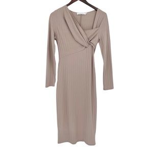 Please see images for measures to ensure fit. ASTR Nude Beige Twist Front Wide Ribbed Midi Dress Size Large