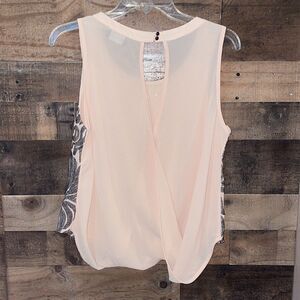 ASTR Peach & Silver Sequin Tank Top, size medium. Excellent used condition. Dry clean. Front is lined. Back is sheer with cool cut out.