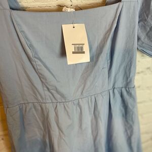 ASTR Poplin Tiered Midi Dress XS Puff Sleeve Blue NWT