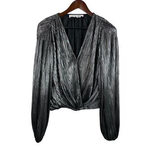 ASTR | Primadonna Silver Black Surplice Neck Cropped Blouse