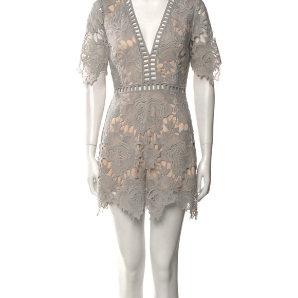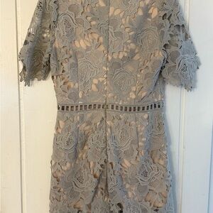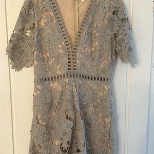Chic gray lace romper with intricate floral patterns. Perfect for special occasions. Never worn!