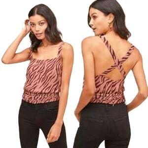ASTR Retro Y2K Animal Mauve Zebra Blouse Top Strappy CrissCross Waist Zipper XS