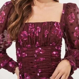 ASTR | Rosalee Floral Mini Dress Small Burgundy Ruched Long Sleeve Dark Romantic