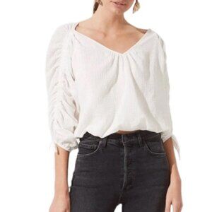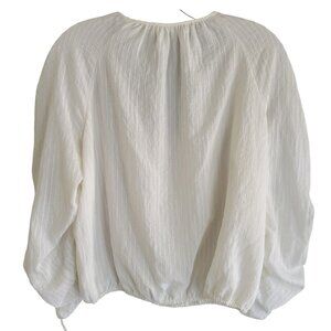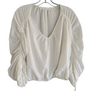 ASTR Ruched Long Sleeve White w Thin Metallic Pinstripes Size S