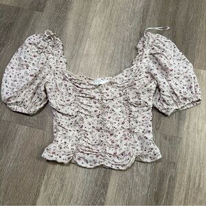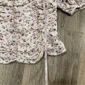 ASTR Ruched Short Sleeve Top in Cream & Lavender Ditsy Large