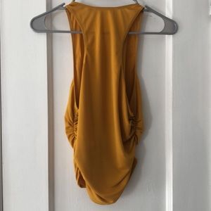 Stretchy marigold tank top with flattering ruching on front and sides. Top was worn once for a couple hours.
