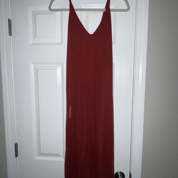 This elegant rust dress is perfect for any occasion. Its sleek design offers a flattering fit, making it a versatile addition to your wardrobe. Dress it up or down