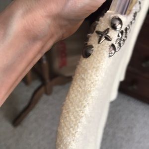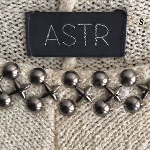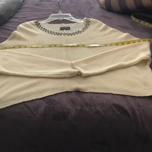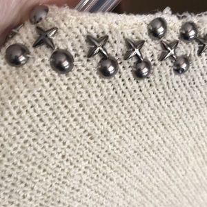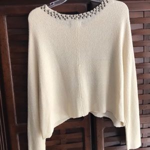 ASTR The Label -hi-lo at the sides cropped sweater in a rich buttercream color. Studded neck and back line. A few of the studs are missing or loose. Not noticeable when worn. Very