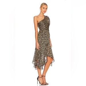 ASTR Santorini Black Floral Print One Shoulder Asymmetric Midi Dress Medium NWT