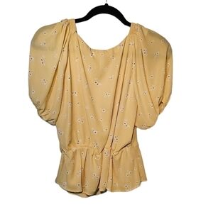 ASTR The Label Apricot Multi Floral Peplum Blouse in size Large