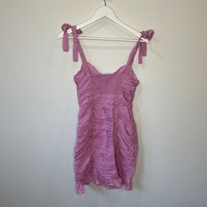 NWOT - ASTR Shoulder Tie Ruffle Cinched Lilac Bodycon Dress