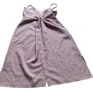 ASTR Size M Pink White Gingham Plaid Max Twist Front Sleeveless A-Line Dress